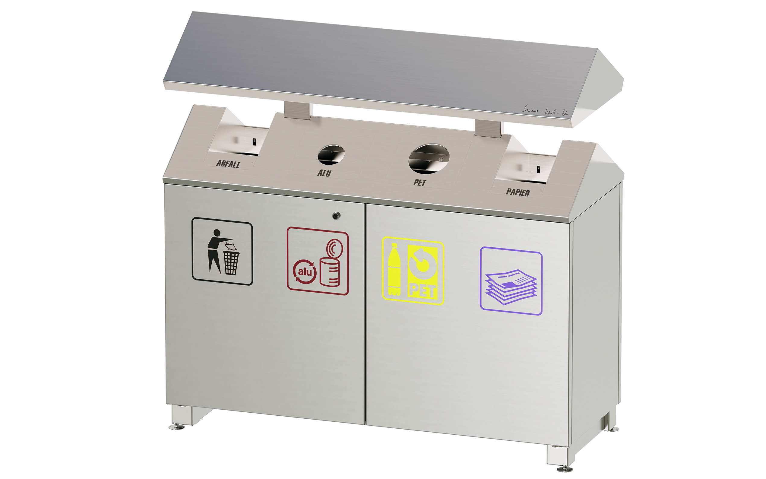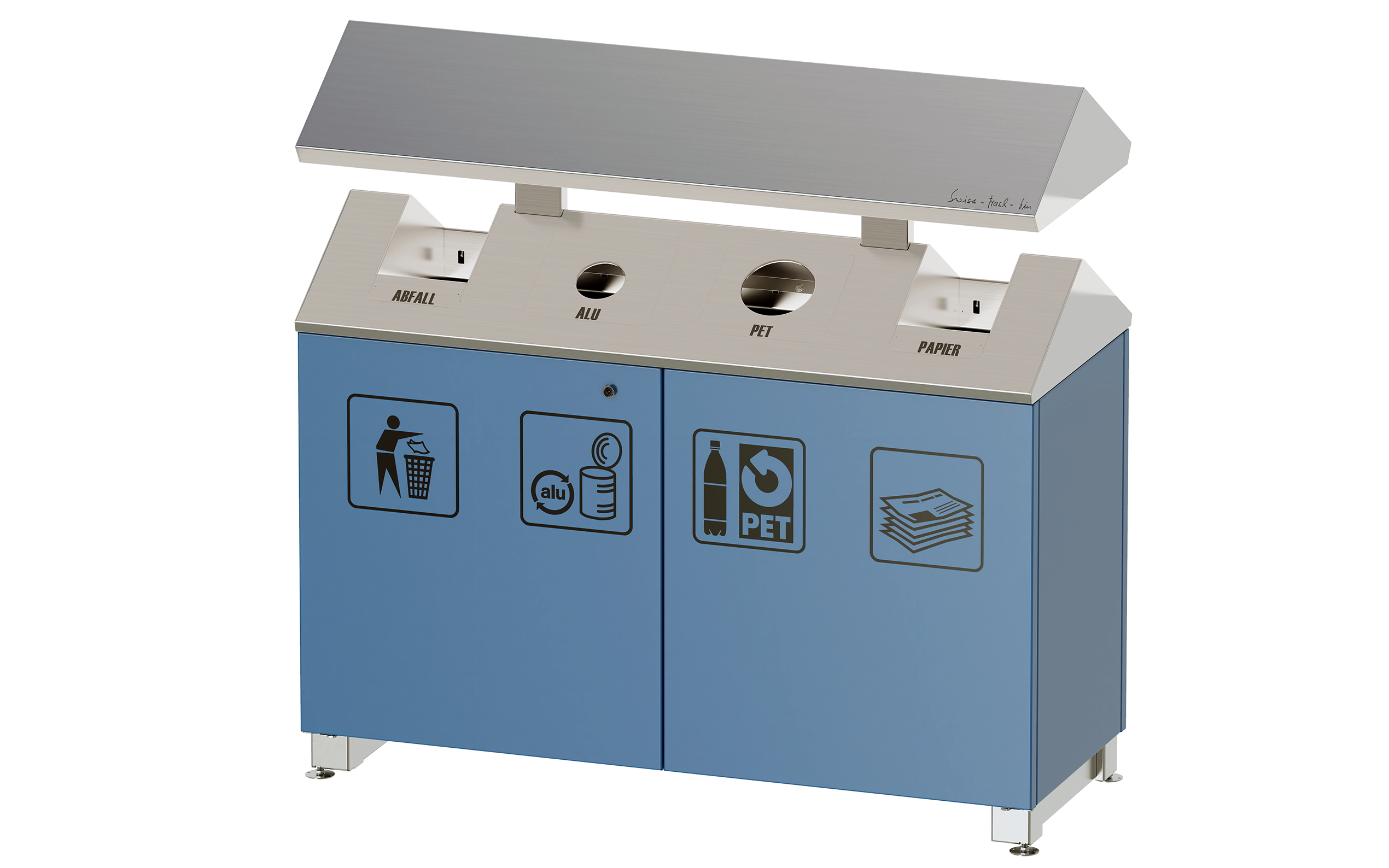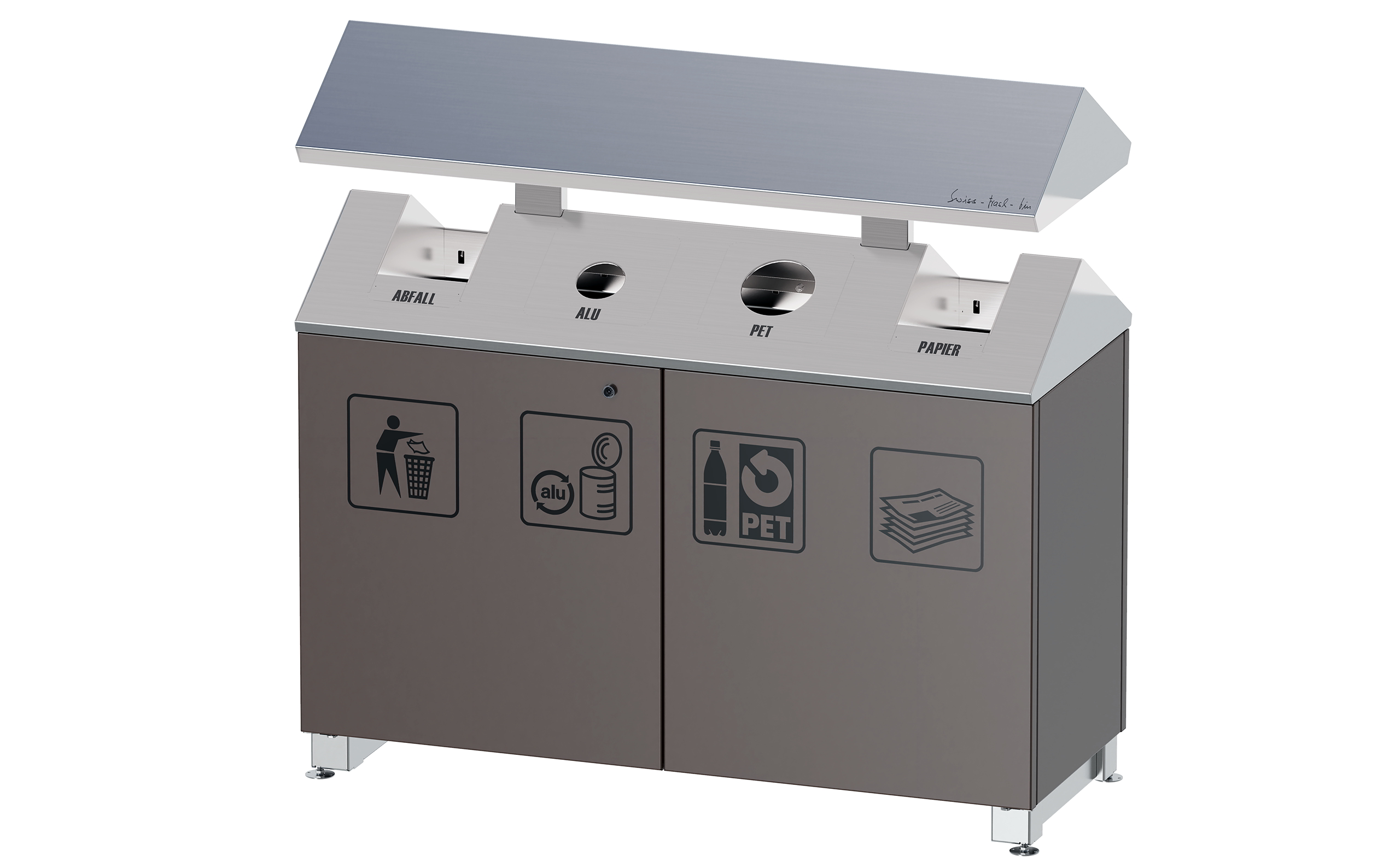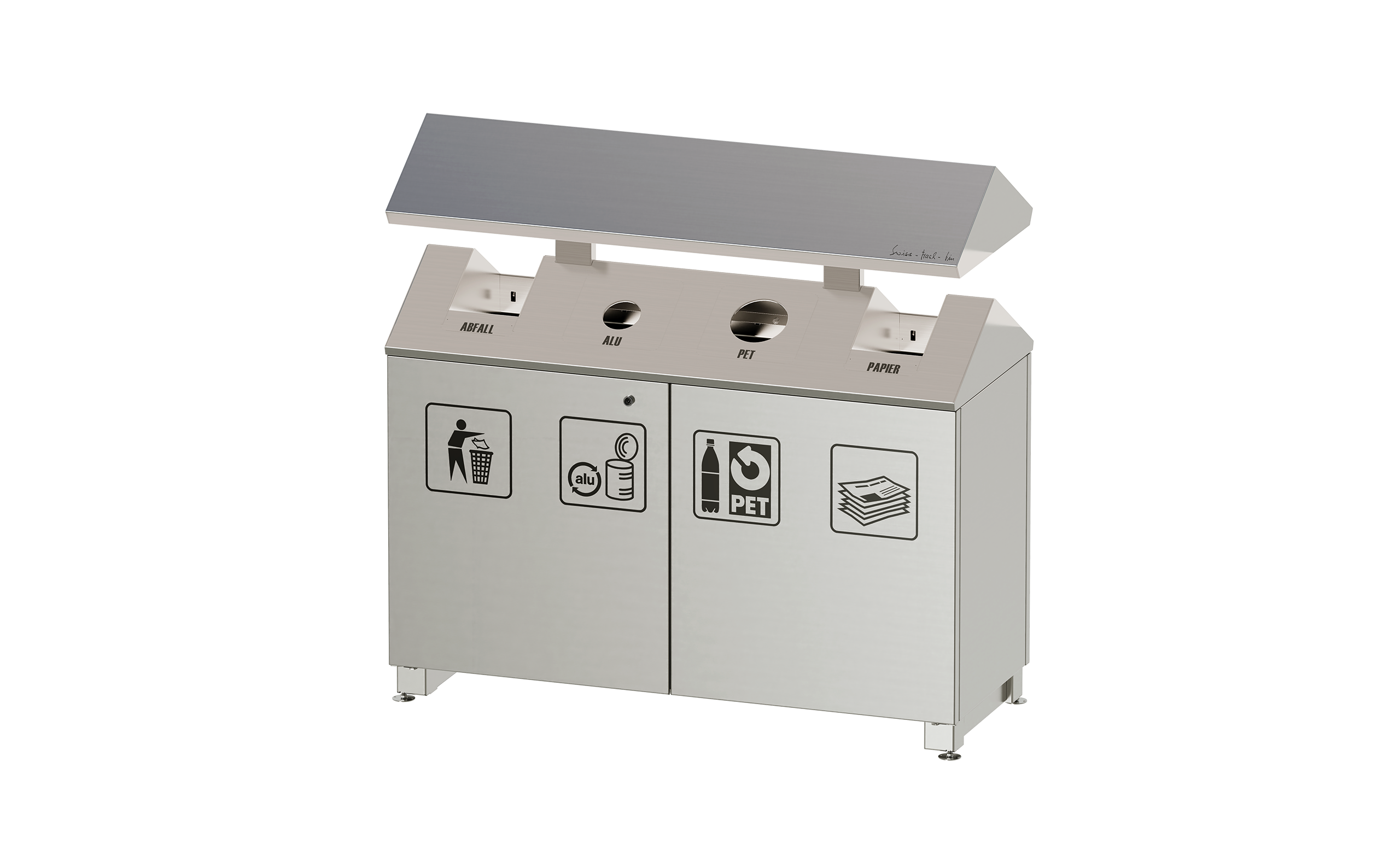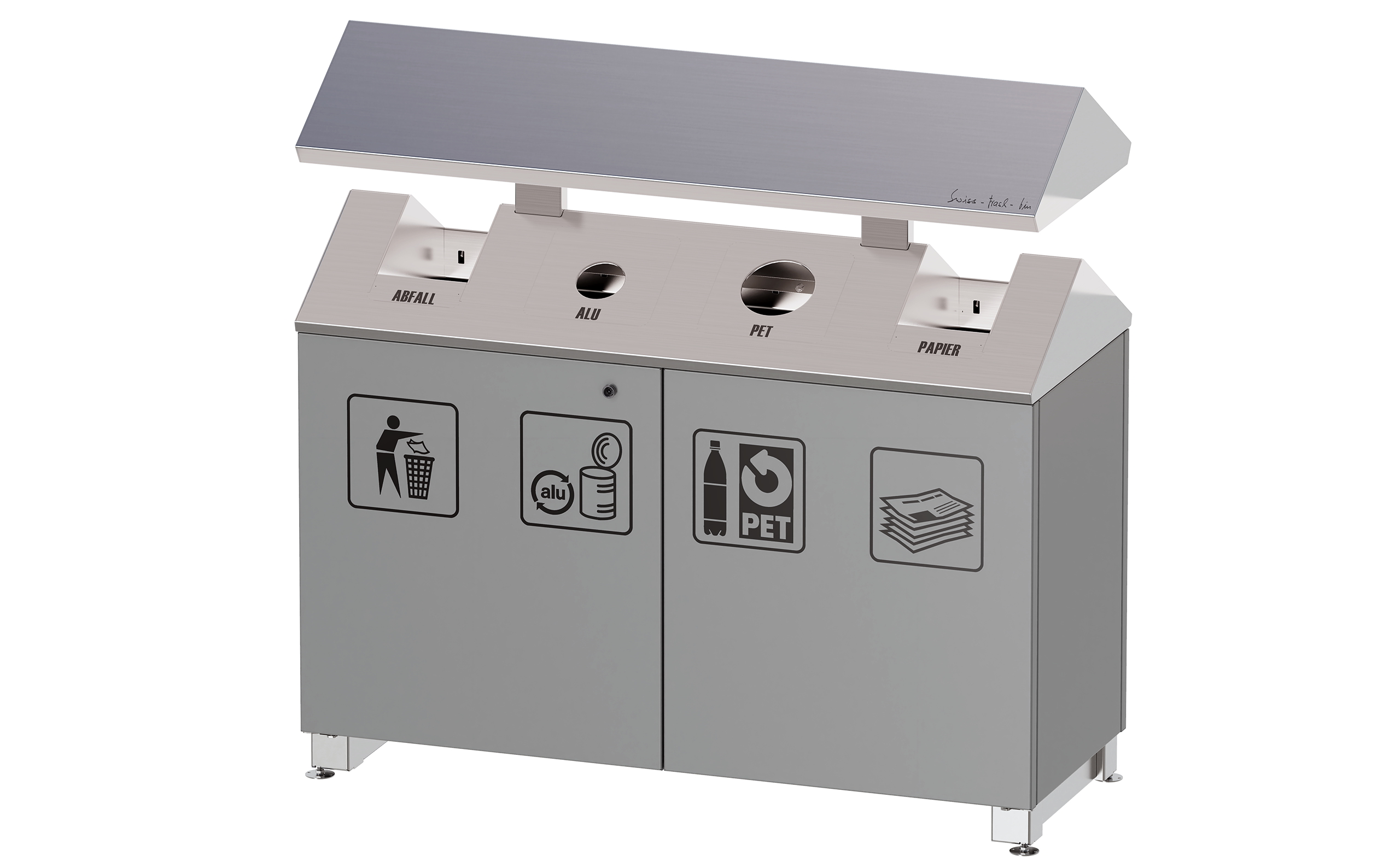 Der Witterungsschutz ist als Baugruppe jederzeit ergänz - und die Einwurfmasken für PET und ALU beliebig vertauschbar.