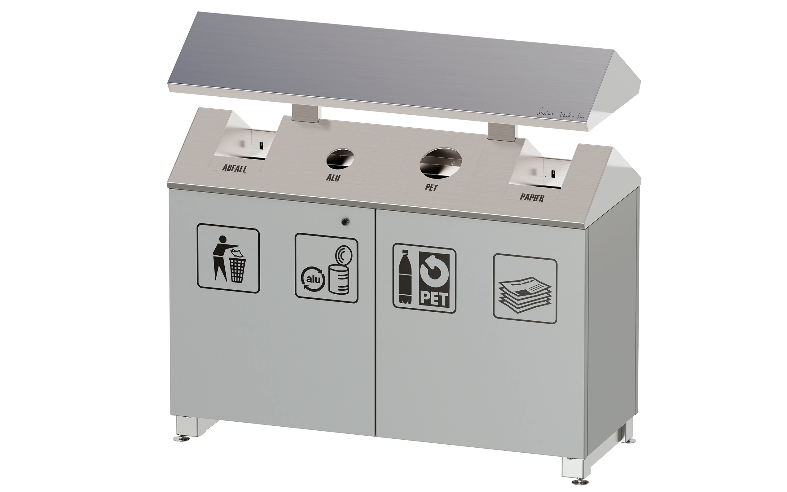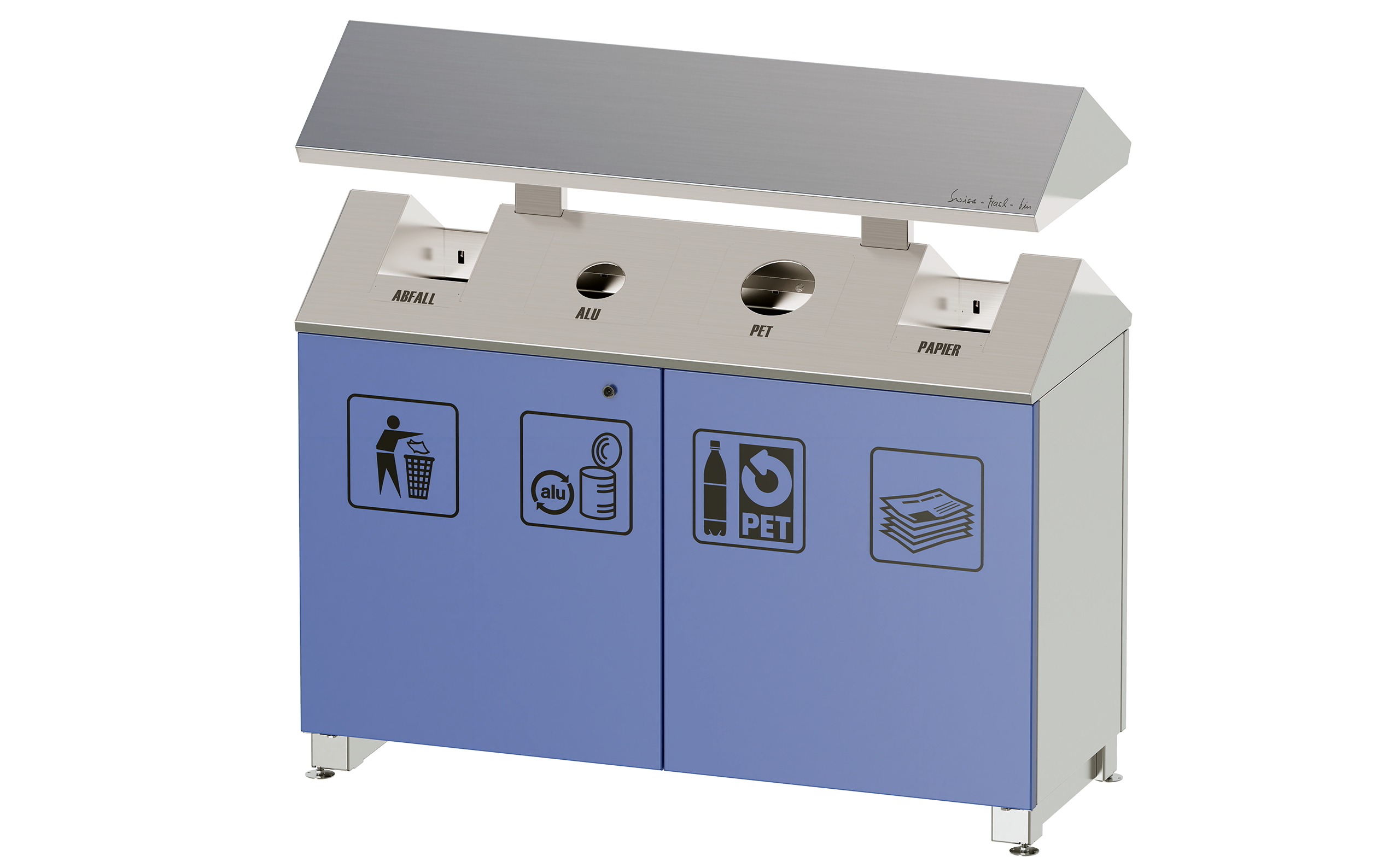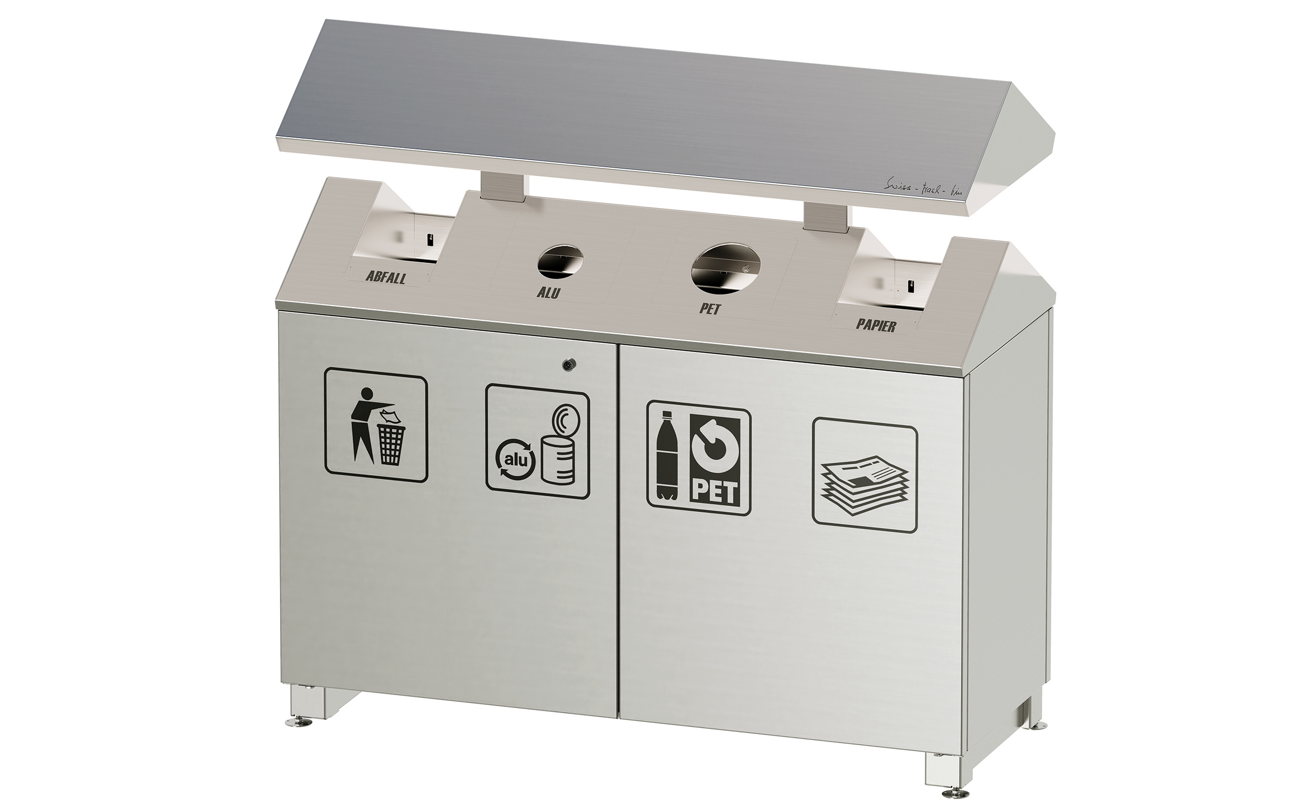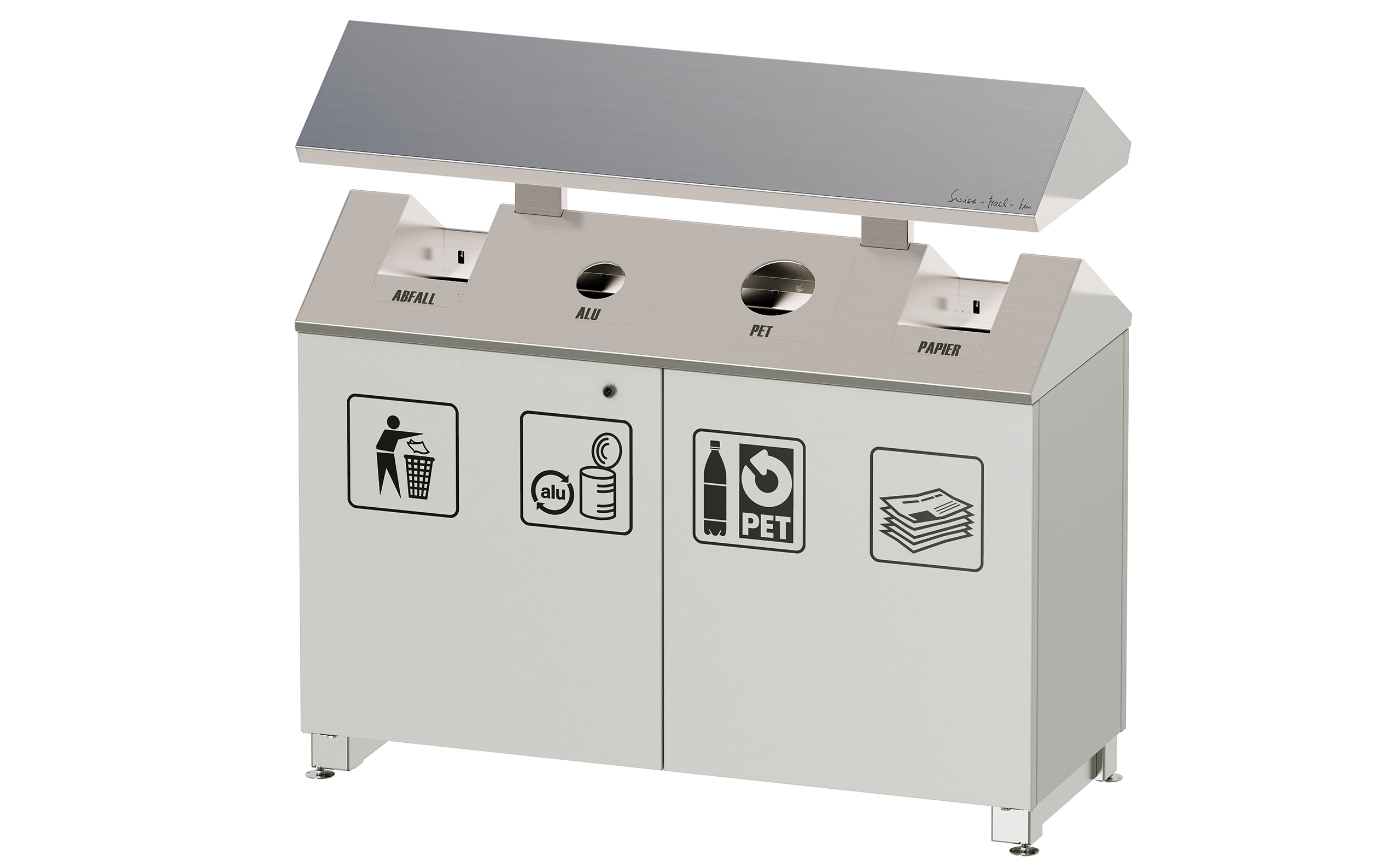 Der Witterungsschutz ist als Baugruppe jederzeit ergänz - und die Einwurfmasken für PET und ALU beliebig vertauschbar.
