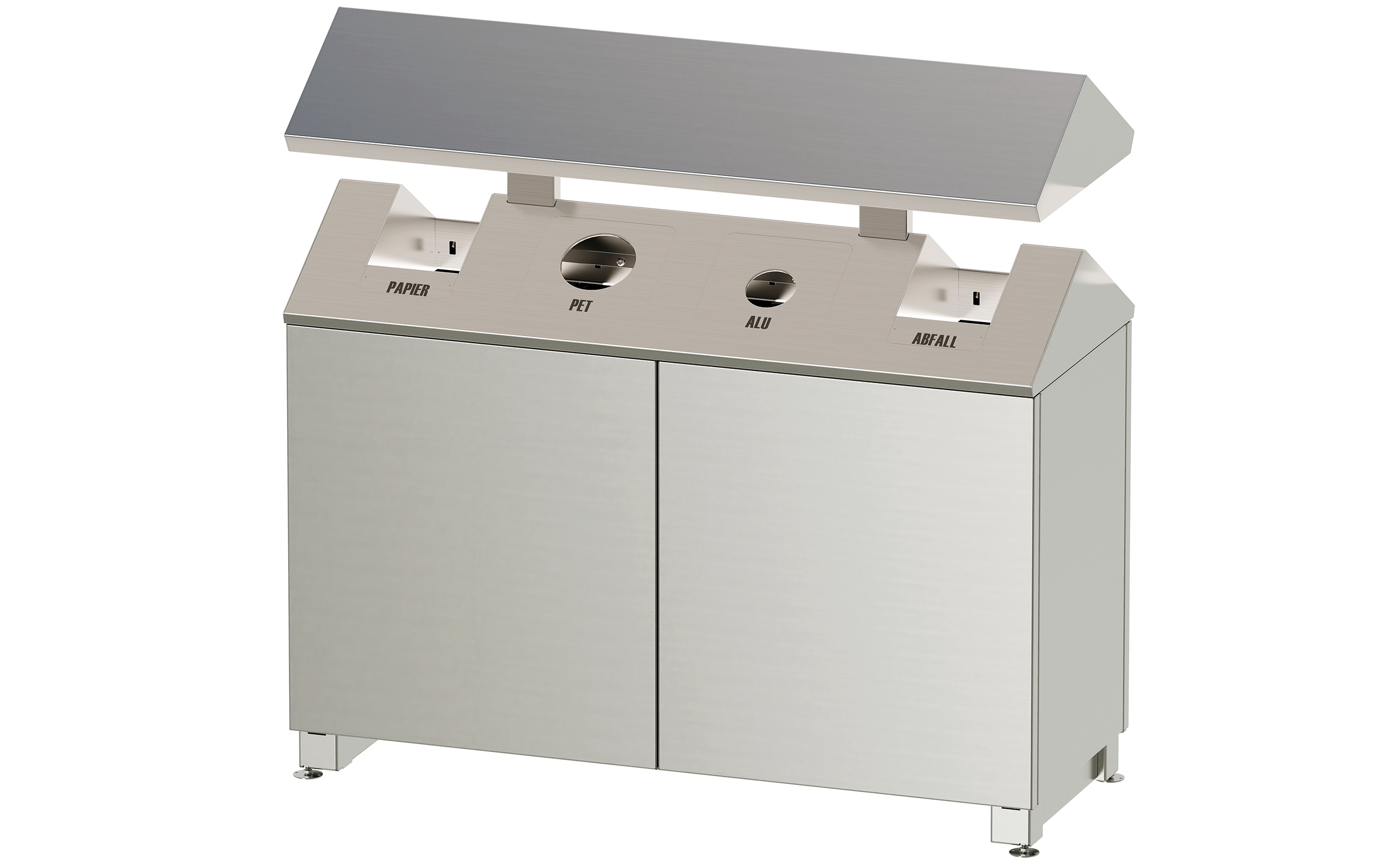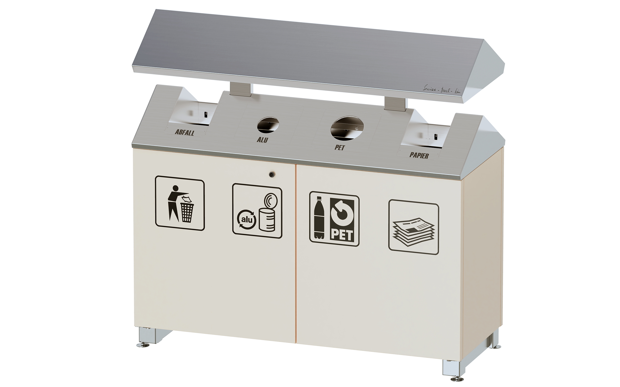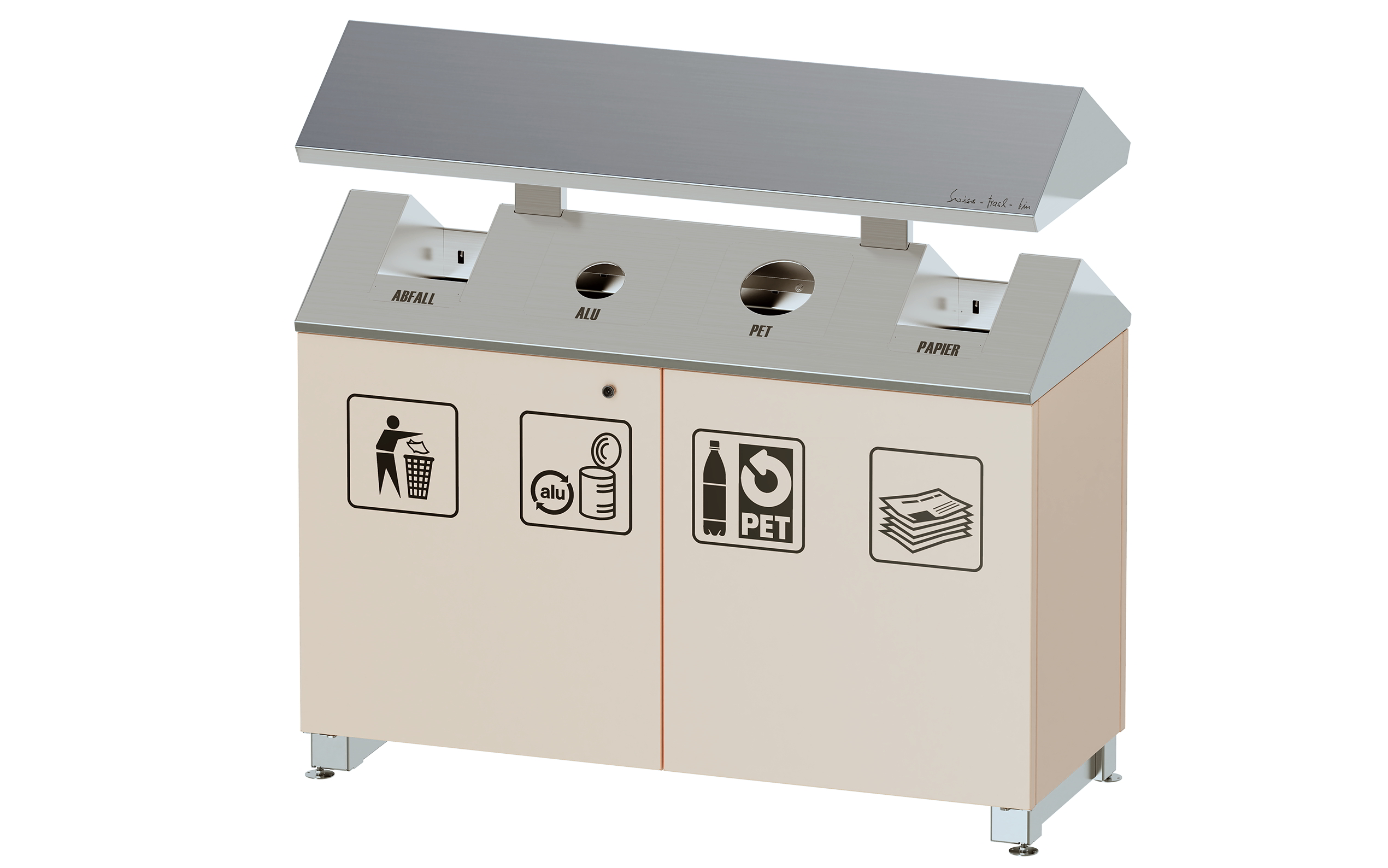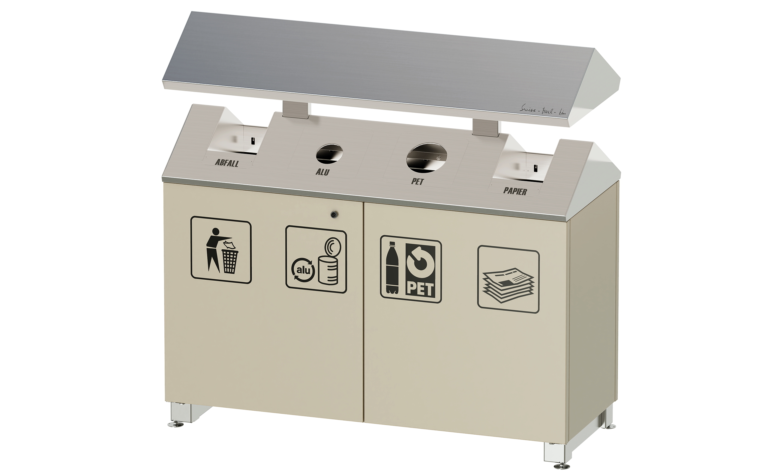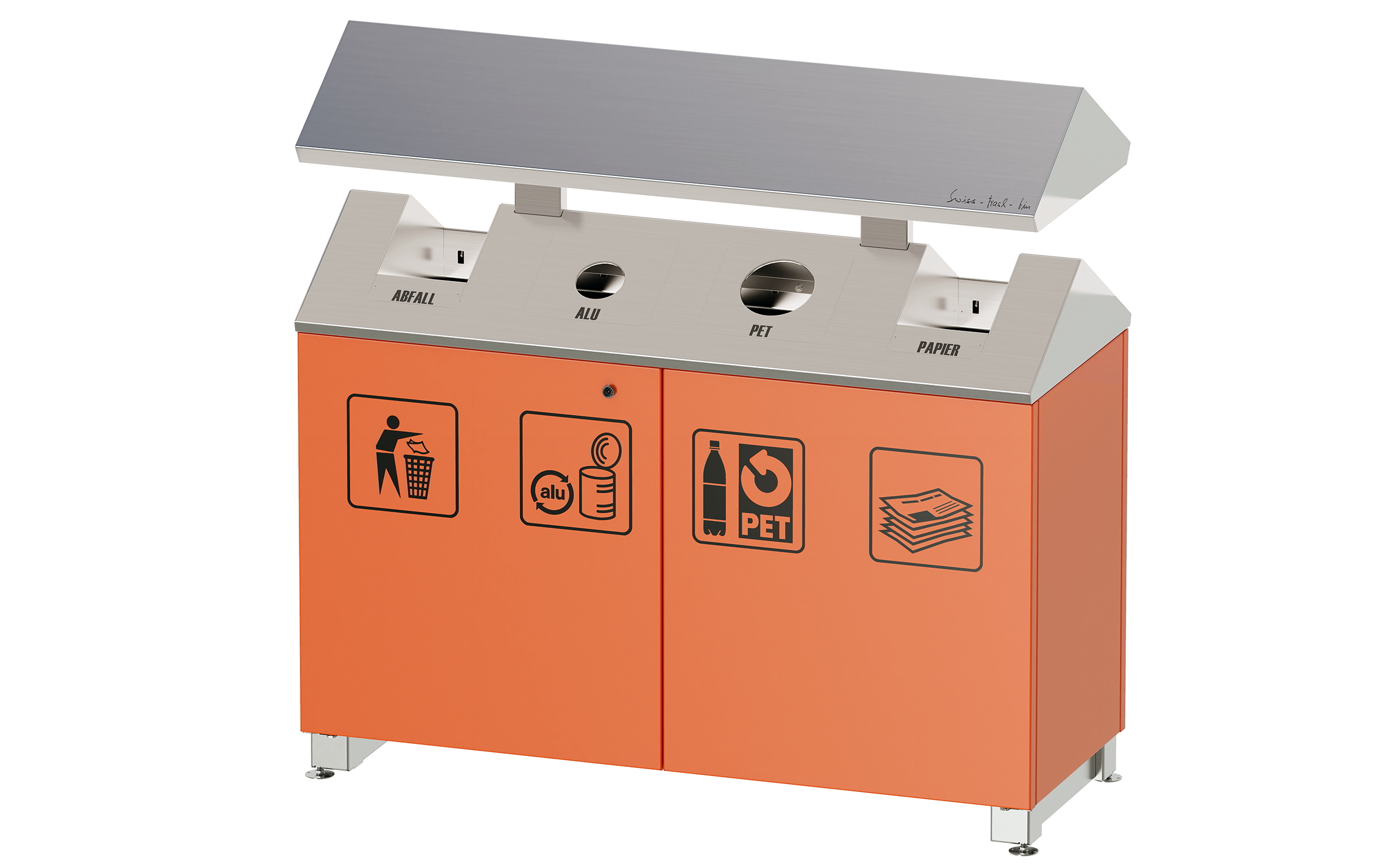 Der Witterungsschutz ist als Baugruppe jederzeit ergänz - und die Einwurfmasken für PET und ALU beliebig vertauschbar.