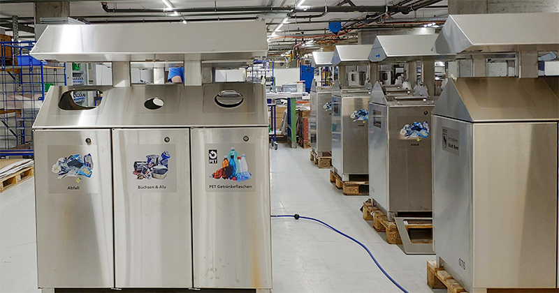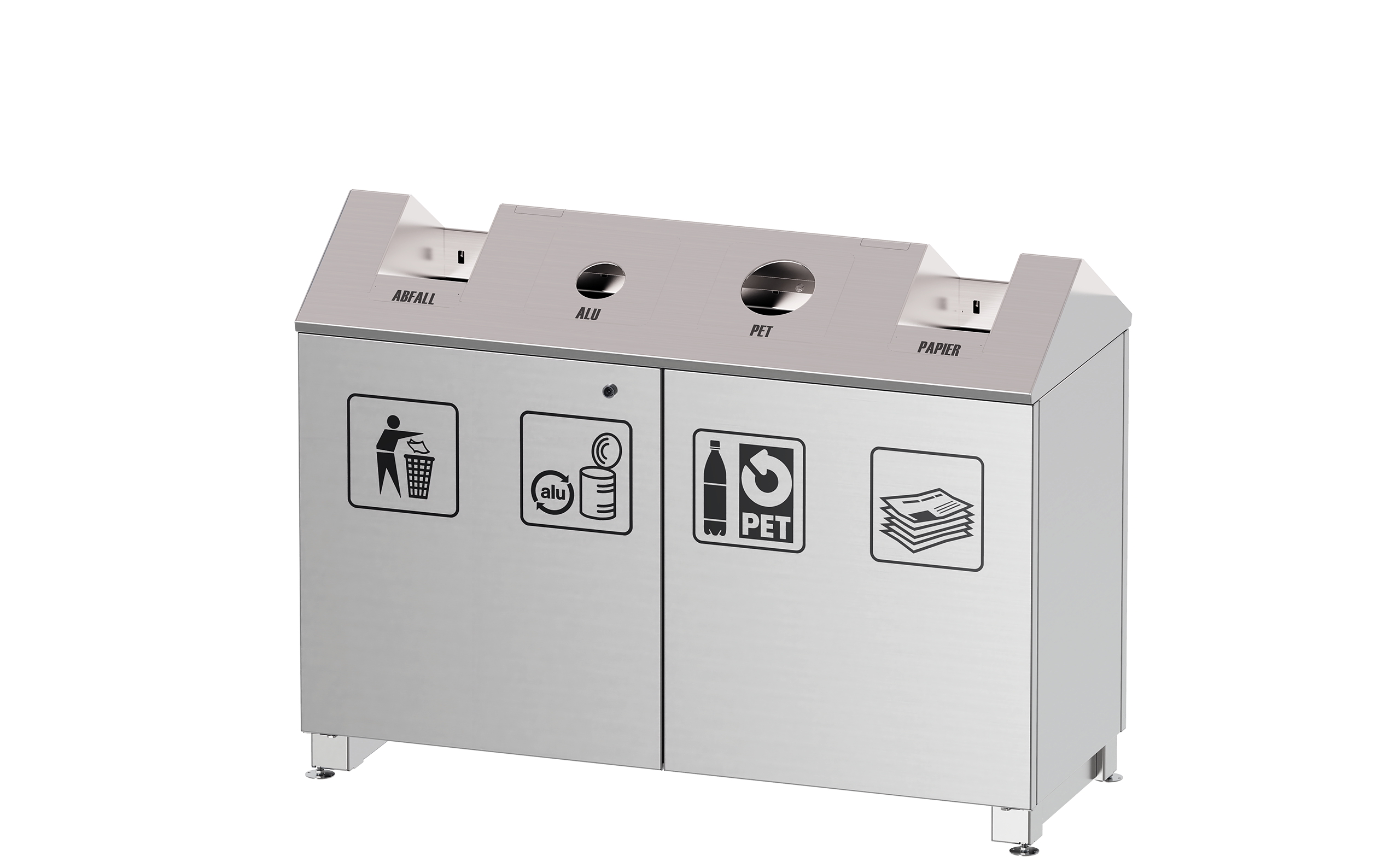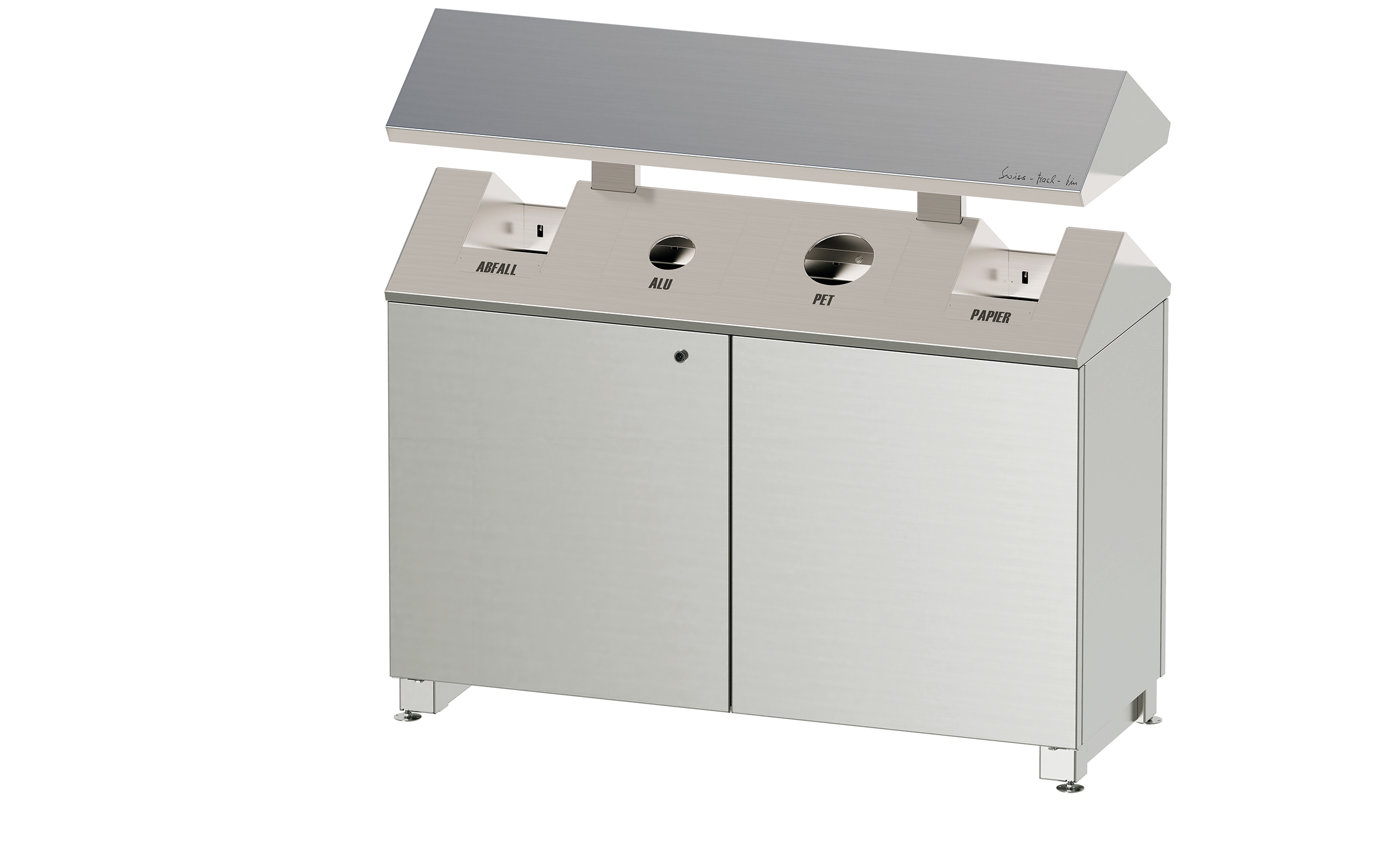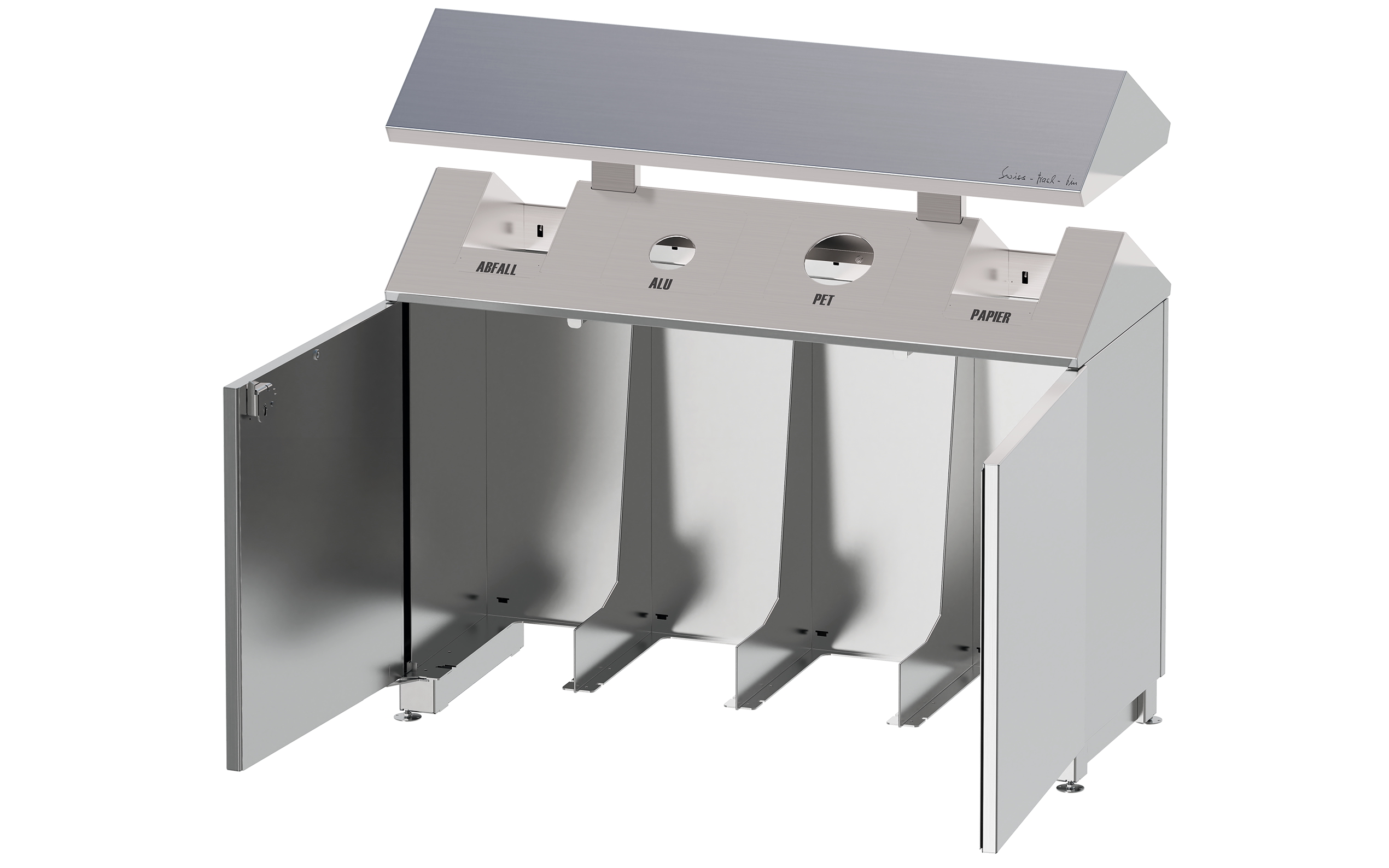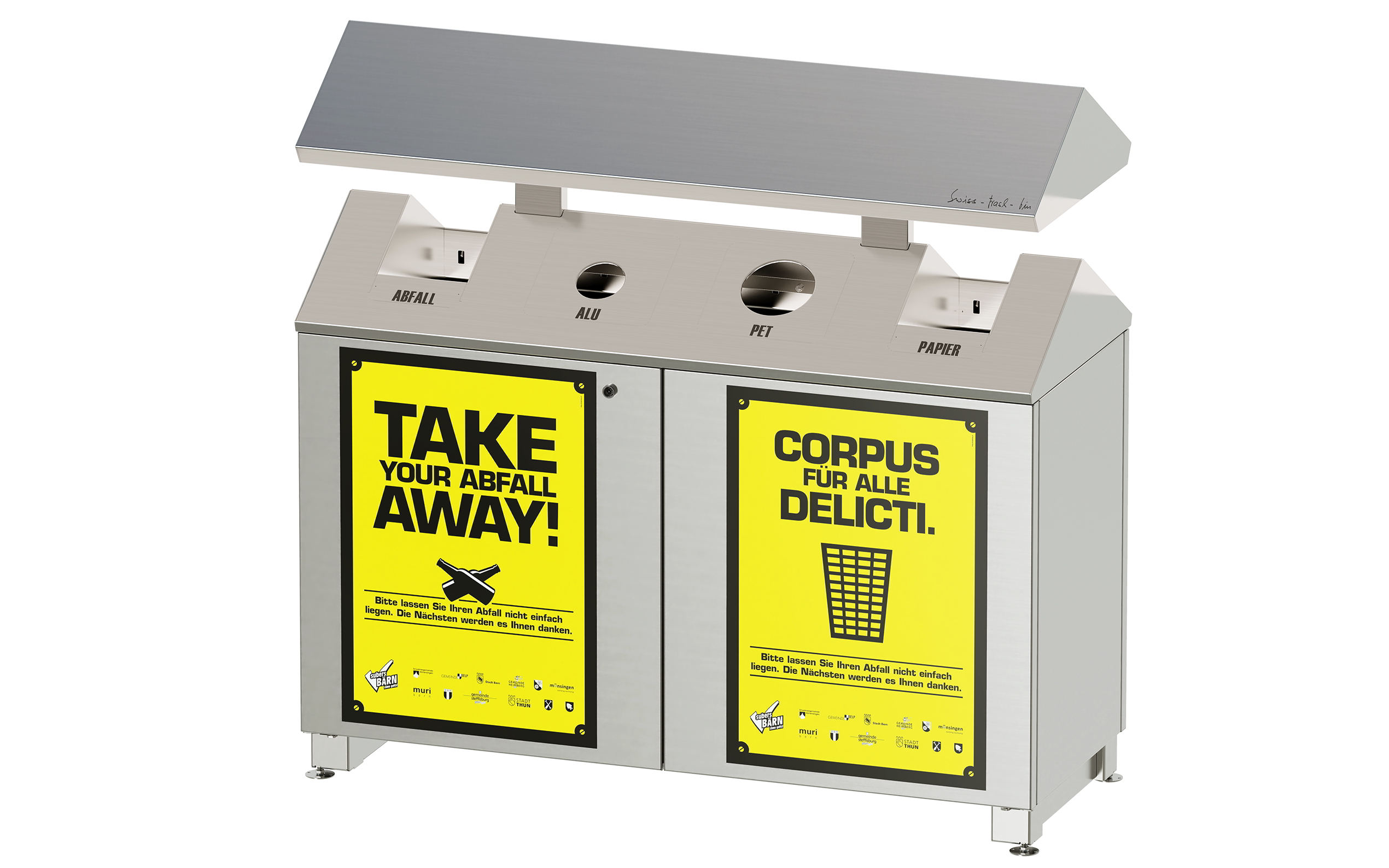 Der Witterungsschutz ist als Baugruppe jederzeit ergänz - und die Einwurfmasken für PET und ALU beliebig vertauschbar.