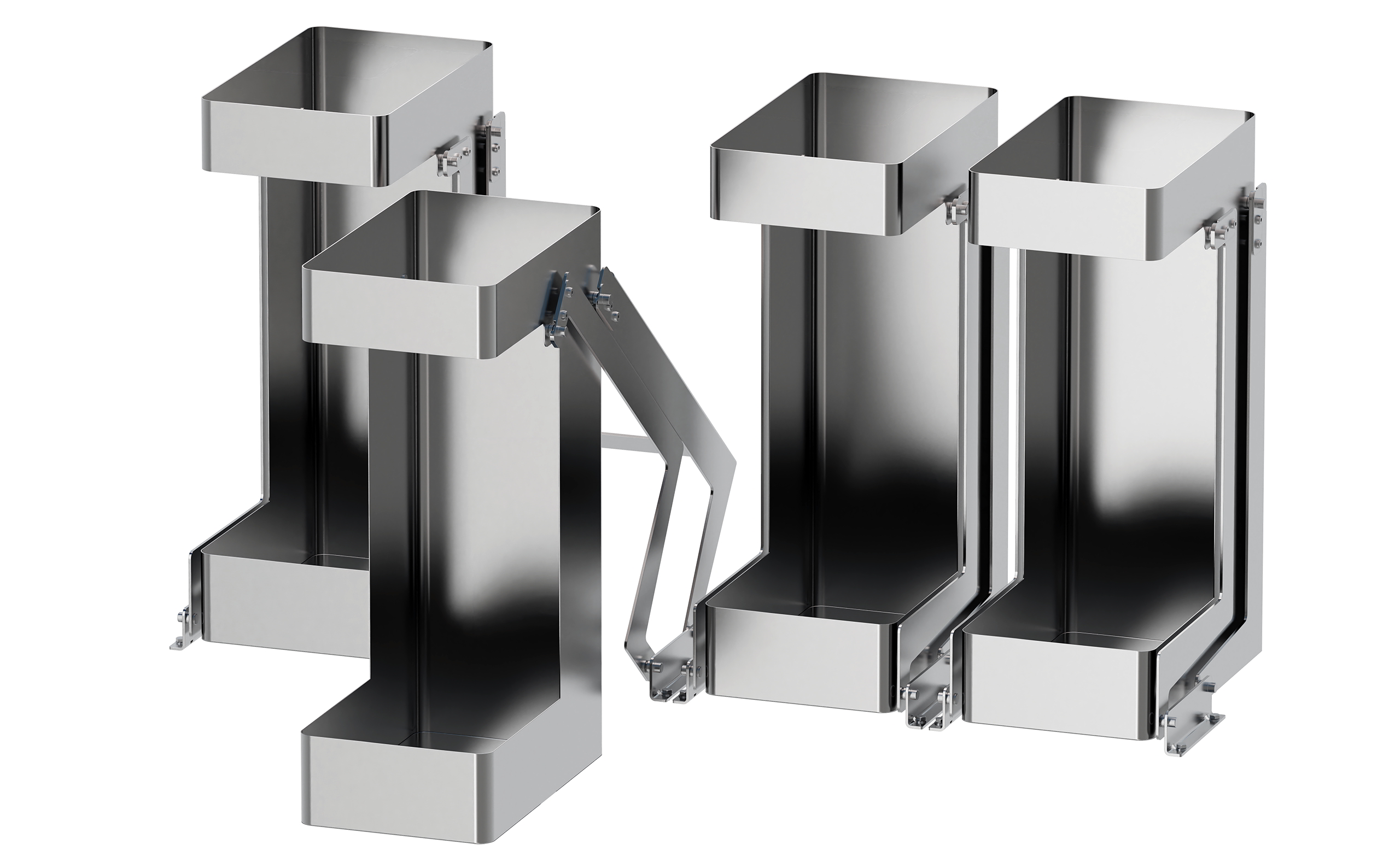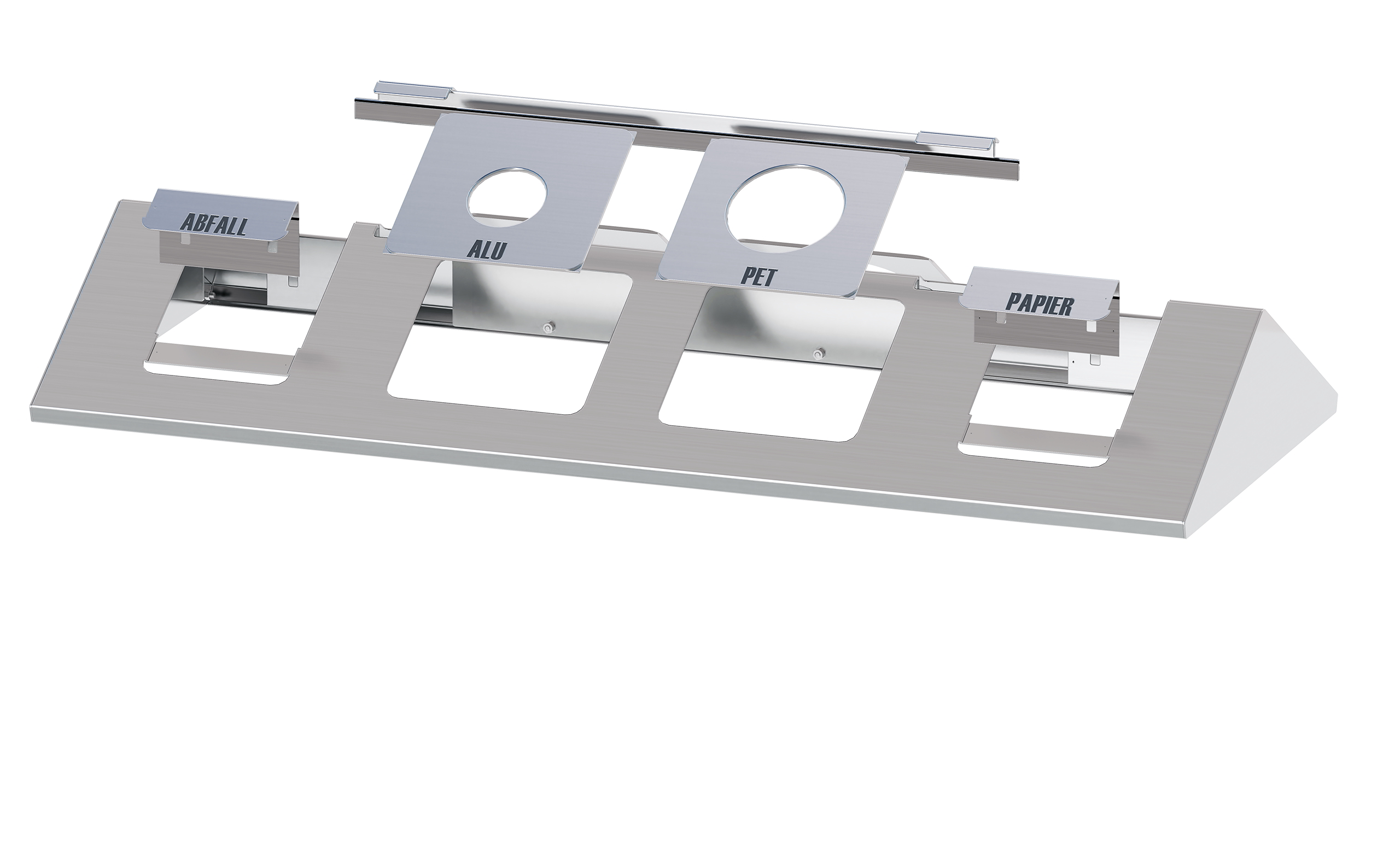 Als Abfallspeicher dienen - variantenunspezifisch - lose Innenbehälter, schwenkbare oder Rollbehälter. Diese Elemente sind ohne Anpassungsarbeiten in kürzester Zeit austausch - und auch kombinierbar.